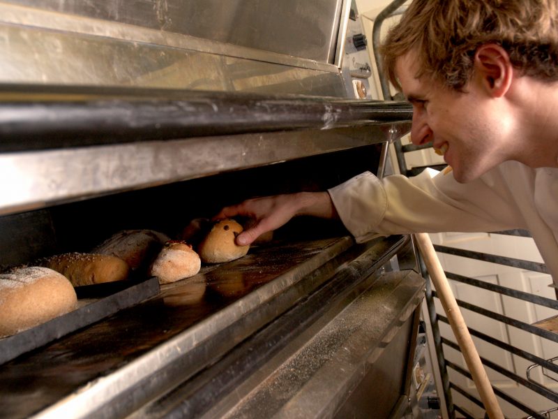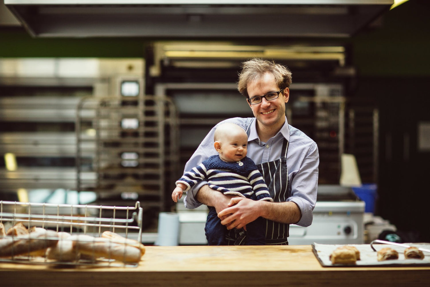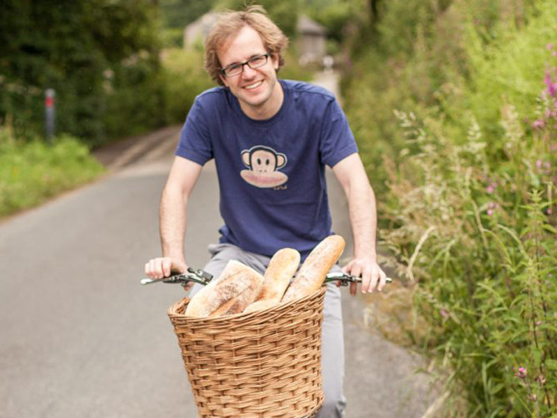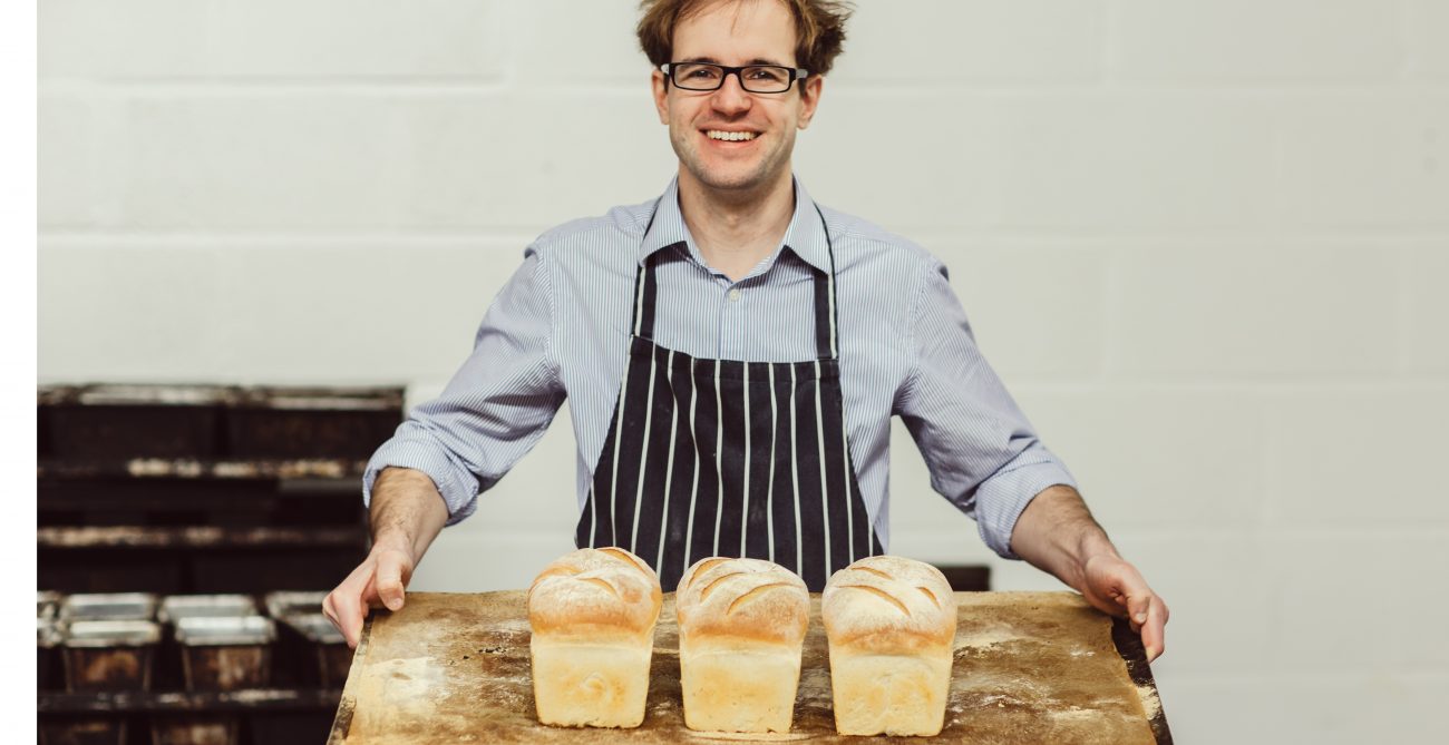At the age of 23, Tom returned from a gap year in India and worked at a local farm shop to help fund his college course. One day, the shop was let down by its bread supplier. Tom went home, picked up a recipe book and baked a couple of loaves on his mother’s kitchen counter. He biked the bread back to the farm shop and the bread sold out.